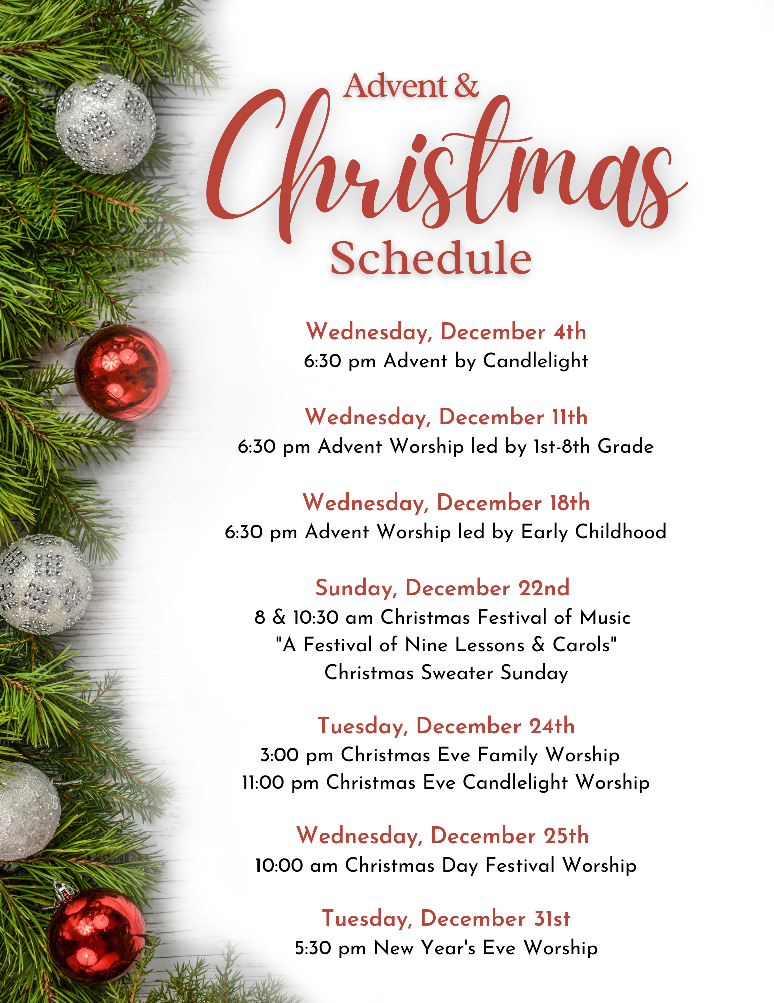 Christmas Service Times